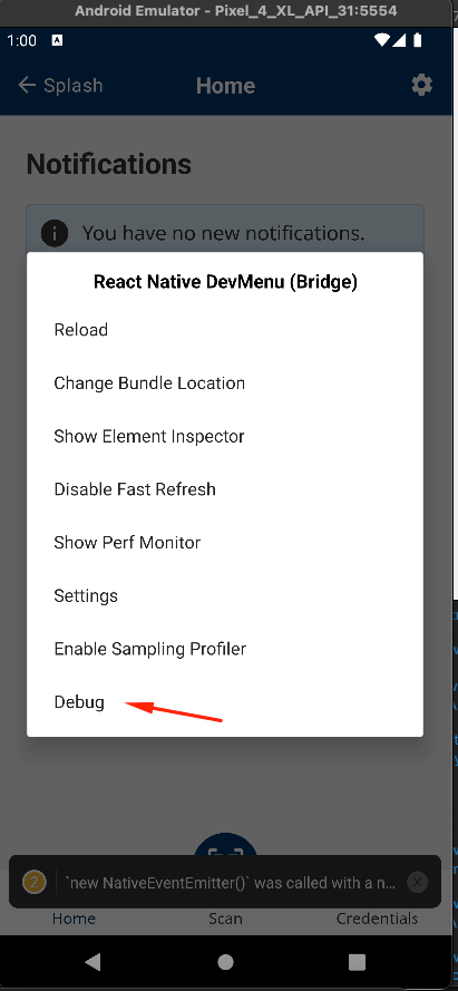 After the initial debug app has been built and deployed to the emulator, you can start the metro bundler: