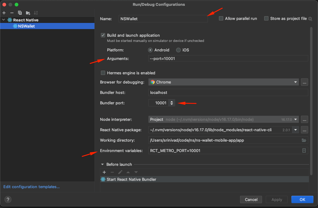 - In a separate terminal, run the following command. To redirect network to react-devtools Debug Application Code in Intellij or WebStorm